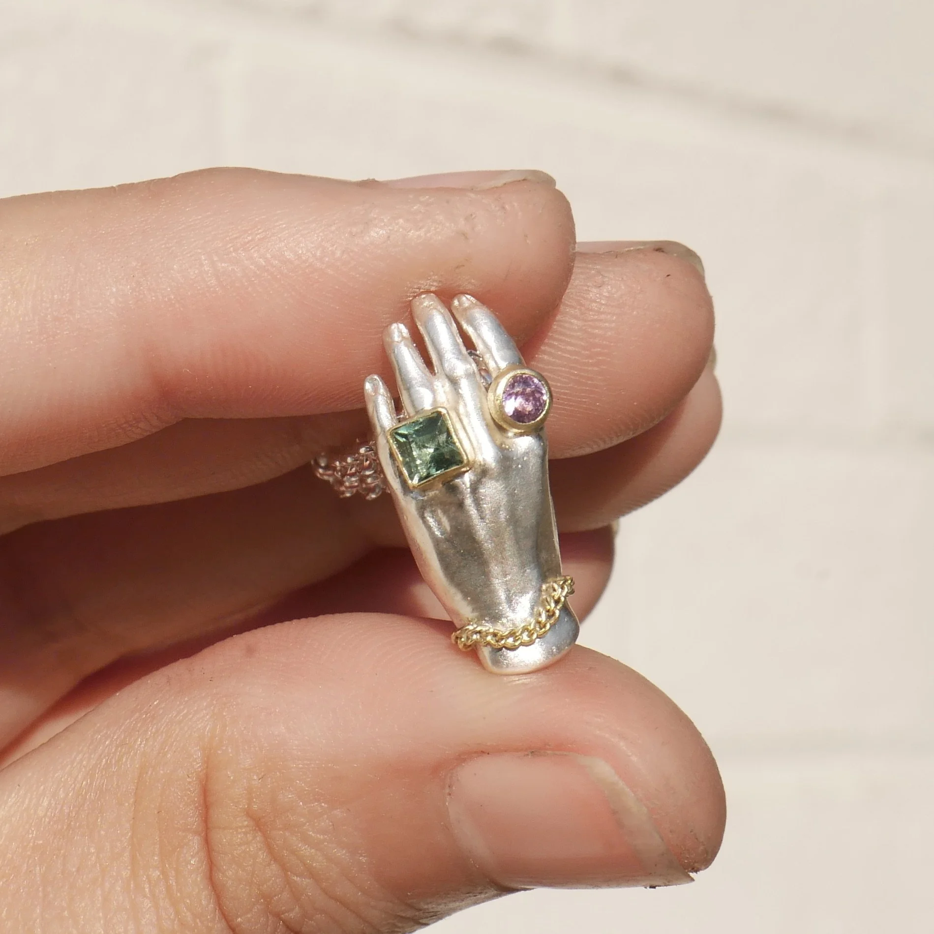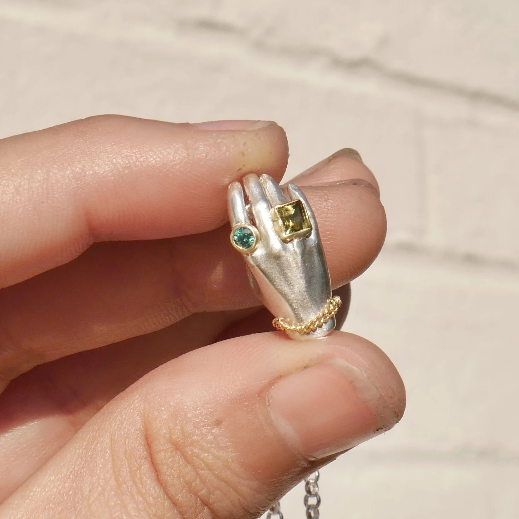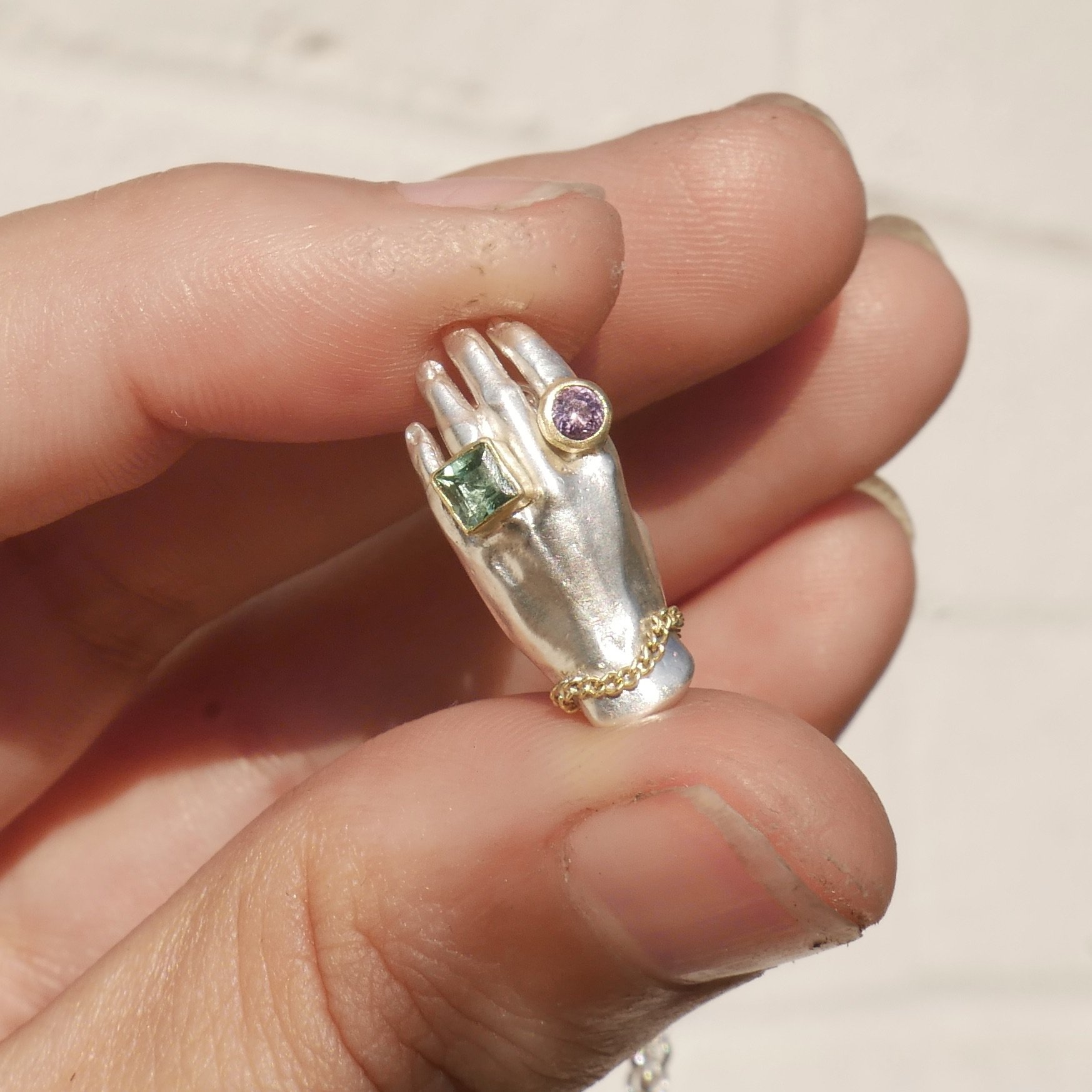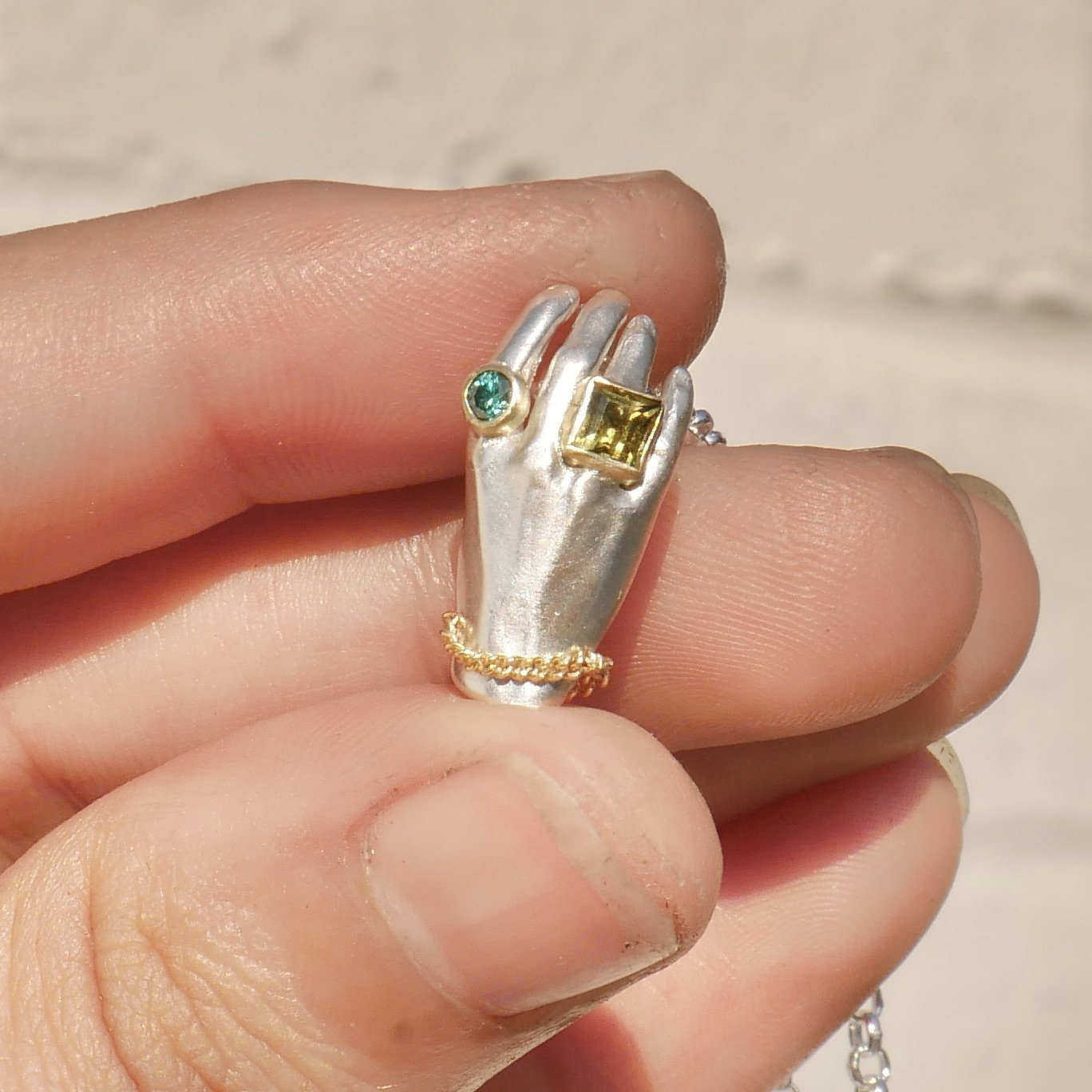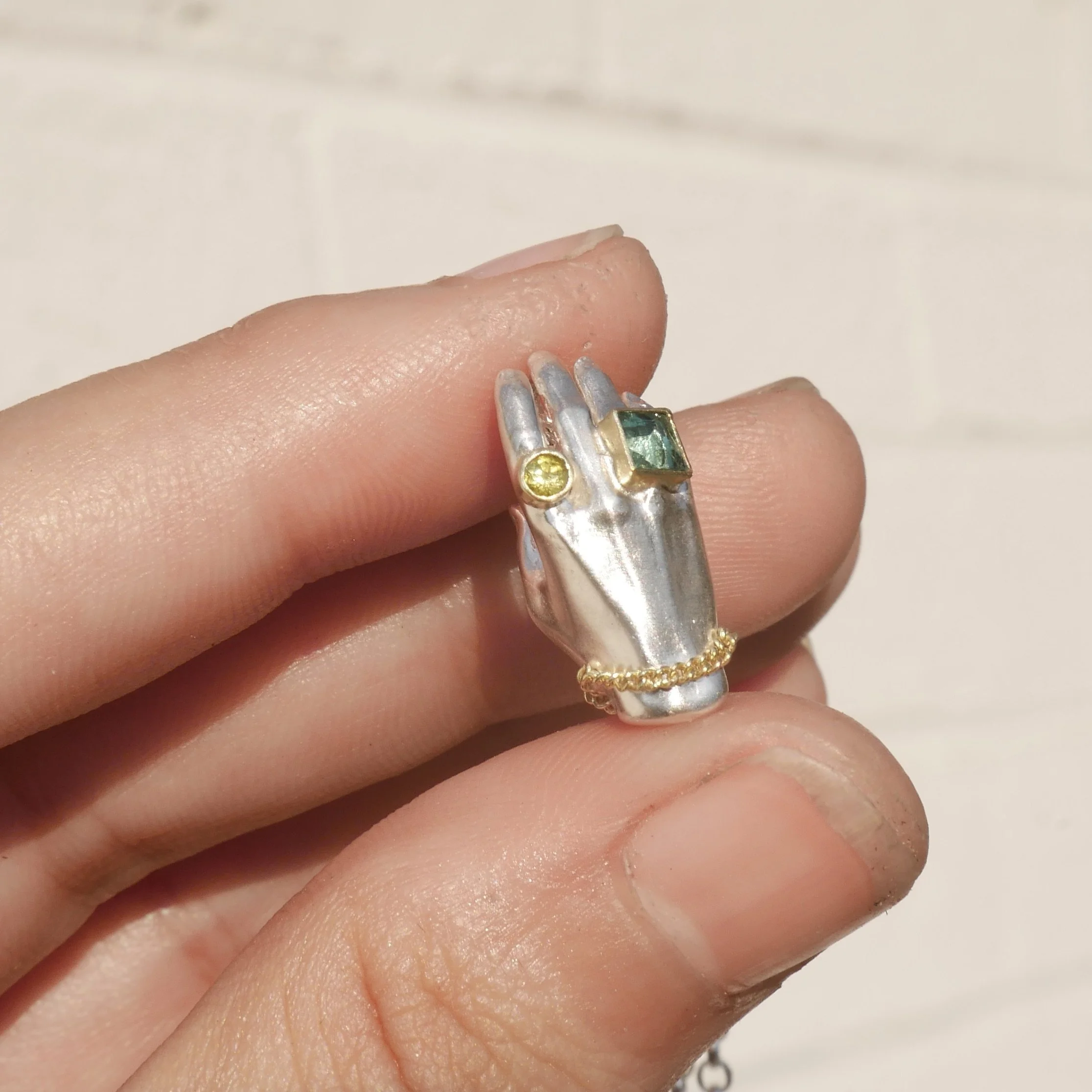 Shop Categories: All Hands Rings Necklaces Earrings Gold Jewelry Under 300 Shop All | Hands | Rings | Necklaces | Earrings | Gold Jewelry | Under 300 | FREE Gift Wrapping $0.00 Chain Star Charm Earrings $223.00 18KY Gold Medallion Pendant $2,324.00 Chain Heart Charm Earrings $223.00 Blossom Squiggle Spessartite Garnet $223.00 Sold Out Spessartite Garnet Carousel Ring $733.00 Blossom Squiggle chartreuse Tourmaline Ring $223.00 Wide Wavy Band mixed Teal Tourmalines $494.00 Wavy Band Plain Silver $90.00 Wavy Band Pink Tourmaline 1/2 $324.00 Wavy band Teal Tourmaline Sale Price: $494.00 Original Price: $523.00 Sale Blue Sapphire Squiggle Ring $344.00 Sold Out Rhodolite Garnet Squiggle Silver Ring $290.00 Green Tourmaline Squiggle Silver Ring $323.00 Opal Squiggle Silver Ring $233.00 Orange Garnet Silver Squiggle Ring $290.00 Sold Out Pink Tourmaline Squiggle Signet $640.00 Rainbow Tourmaline Squiggle Signet $690.00 Green Tourmaline Squiggle Signet $740.00 Opal and Sapphire adorned Hands $443.00 Faithful Rocks Hand Studs $523.00 Diamond Helping Hands studs $373.00 Silver Helping Hands with 18k gold adornment $270.00 Diamond Helping Hand Necklace from $303.00 Emerald Hand with Diamond from $480.00 Emerald Hand Pendant from $295.00 Apple Green and Teal tourmaline Hand Pendant from $425.00 Pink Tourmaline and Teal sapphire Hand Pendant from $425.00 Teal and light Green Tourmaline Hand Pendant from $404.00 Pink Tourmaline and Olive Green Hand Pendant from $404.00 Hot Pink Sapphire Hand Pendant from $344.00 Purple and Green Hand Pendant from $404.00 Teal and Hot Pink Hand Pendant from $404.00 Sold Out Golden Hand Necklace Princess Jasmine colorway from $1,150.00 Golden Hand Milagro Emerald Heart & Opal on 14K yellow gold from $1,650.00 White Silver Hand with Blue Sapphire $303.00 Heart on Hand pendant from $323.00 Purple Sapphire Hand Pendant from $328.00 Teal Tourmaline and Purple Sapphire Hand Pendant $423.00 Sold Out Nasty Green and Bright Teal Hand Pendant $423.00 Green Heart with Opal Hand from $414.00 Purple Heart with Emerald Hand Pendant from $414.00 Green Tourmaline Princess Cut Hand Pendant from $354.00 Ruby Heart with Purple Sapphire Hand Pendant from $414.00 Red Heart Hand Pedant from $314.00 Tanzanite Purple Heart Hand pendant from $314.00 Sold Out Teal Tourmaline and Chartreuse Tourmaline Hand Pendant from $404.00 Green Tourmaline and Mustard Tourmaline Hand Pendant $423.00 Sold Out Round Teal Tourmaline Hand Pendant from $303.00 Opal Helping hand Pendant from $275.00 Helping Hand Pendant gold adornment only $223.00 Opal Sugar Skull on Opal Beads Sale Price: $493.00 Original Price: $550.00 Sale Silver Colima Dog Sale Price: $190.00 Original Price: $223.00 Sale Colima Dog with Gold Bail Sale Price: $244.00 Original Price: $273.00 Sale Silver Sugar Skull from $190.00 Sale Purple Sapphire Sugar Skull from $373.00 Mis-Mathced Teal Sapphire Sugar Skull from $379.00 Sold Out Ruby, Emerald a Blue Sapphire Sugar skull Charm $390.00 Sold Out Blue Tourmaline Sugar Skull Charm $333.00 Sold Out Opal and Emerald Sugar Skull from $373.00 3 4 Chain Bracelet $544.00 Tourmaline Cab Sparkle Stud single Sale Price: $123.00 Original Price: $133.00 Sold Out 18k yellow gold Sparkle stud single $173.00 18k Yellow Gold And Rhodolite Garnet SquiggleRing $2,340.00 Aquamarine Sparkle and Stars Ring $503.00 Sold Out Sparkle and Sparks Ring with faceted tourmaline $343.00 Tanzanite Squiggle Signet Spark Ring $523.00 Large Sparkle Charm with Teal Tourmaline square Charm from $280.00 Littlest Anvil on 14k gold chain $320.00 Oval Tourmaline Dotty ring with Spark Cheeks $273.00 Oval Purple Sapphire Dotty Ring $290.00 3 Tourmaline Dotty Ring $319.00 Oval Tourmaline Dotty Ring $243.00 Purple sapphire cab Sparkle stud single Sale Price: $123.00 Original Price: $133.00 Sale Purple Sapphire square Sparkle stud single Sale Price: $133.00 Original Price: $143.00 Sale Square Tourmaline Sparkle stud single Sale Price: $123.00 Original Price: $133.00 Sale Green Cab Tourmaline Sparkle stud single Sale Price: $83.00 Original Price: $103.00 Sale Small round Purple Gold Smush Pendant $203.00 Sold Out 18KY Golden Contagious Heart from $1,733.00 Marquis Aquamarine Carved Pendant Sale Price: $443.00 Original Price: $533.00 Sold Out Green tourmaline Gold Heart Studs Sale Price: $693.00 Original Price: $850.00 Sale Contagious Heart Medium no stones from $89.00 Sale Medium Contagious Heart Charm *Multiple Colors available from $240.00 Large Contagious Heart Emerald Necklace $303.00 Golden Serpent Tourmaline Necklace Sale Price: $623.00 Original Price: $790.00 Sale Broadening the Horizon Silver & Gold Charm from $190.00 Sale Mini Gather Charm sapphire rounds and pear from $490.00 Sold Out Solid 18k gold Opal Charm from $390.00 Diamond and Sapphire Gather pendant 18KY from $1,440.00 Spread the Love Dendrite pendant $623.00 Sold Out Whimsy Cognac Diamond Ring $1,223.00 Teal Tourmaline Asymmetric Pair $390.00 Statement Aquamarine 3 ways ring size 8.5 *can be sized Sale Price: $440.00 Original Price: $523.00 Sale Colossal Quartz Earrings Sale Price: $523.00 Original Price: $650.00 Sale Quartz Mix and pearl Earrings Sale Price: $290.00 Original Price: $340.00 Sale Statement traditional Pendant Sale Price: $190.00 Original Price: $303.00 Sale Opal space-age studs $143.00 Moss Agate Drop Earrings Sale Price: $490.00 Original Price: $523.00 Sale Tanzanite gold ballsy studs $123.00 Double Serpent ring with Watermelon Tourmaline $243.00 Dendritic Quartz statement ring wide band Sale Price: $175.00 Original Price: $275.00 Sale 18k Gold Opal Splat Pendant $599.00 Sold Out Gold Splat Pendant with blue tourmaline Sale Price: $490.00 Original Price: $523.00 Sale Small Ballsy Pendant Silver on Lapis $123.00 Sold Out Large Ballsy Pendant 18k Gold with Opal $990.00 Small Ballsy Pendant with Opal (Blue or White) Sale Price: $103.00 Original Price: $143.00 Sale Tanzanite Splat Pendant Sale Price: $90.00 Original Price: $123.00 Sold Out Silver Splat Pendant